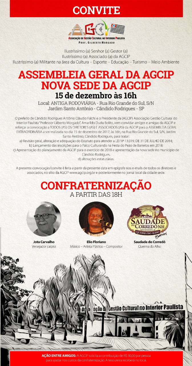 Ação entre Amigos: A AGCIP solicita a Contribuição de R$30,00 por pessoa para ajudar nos custos da Confraternização . A tesouraria receberá no local.
